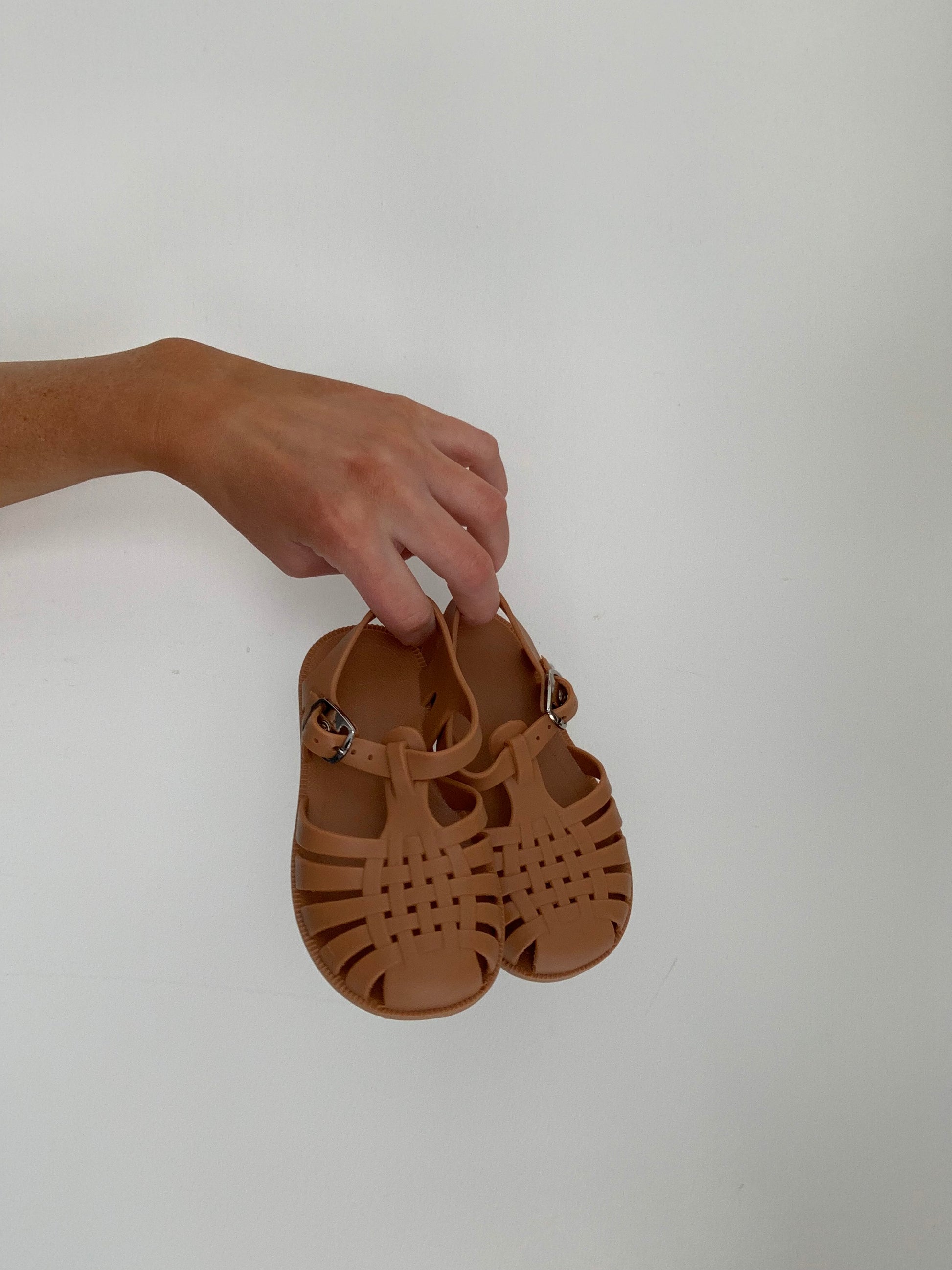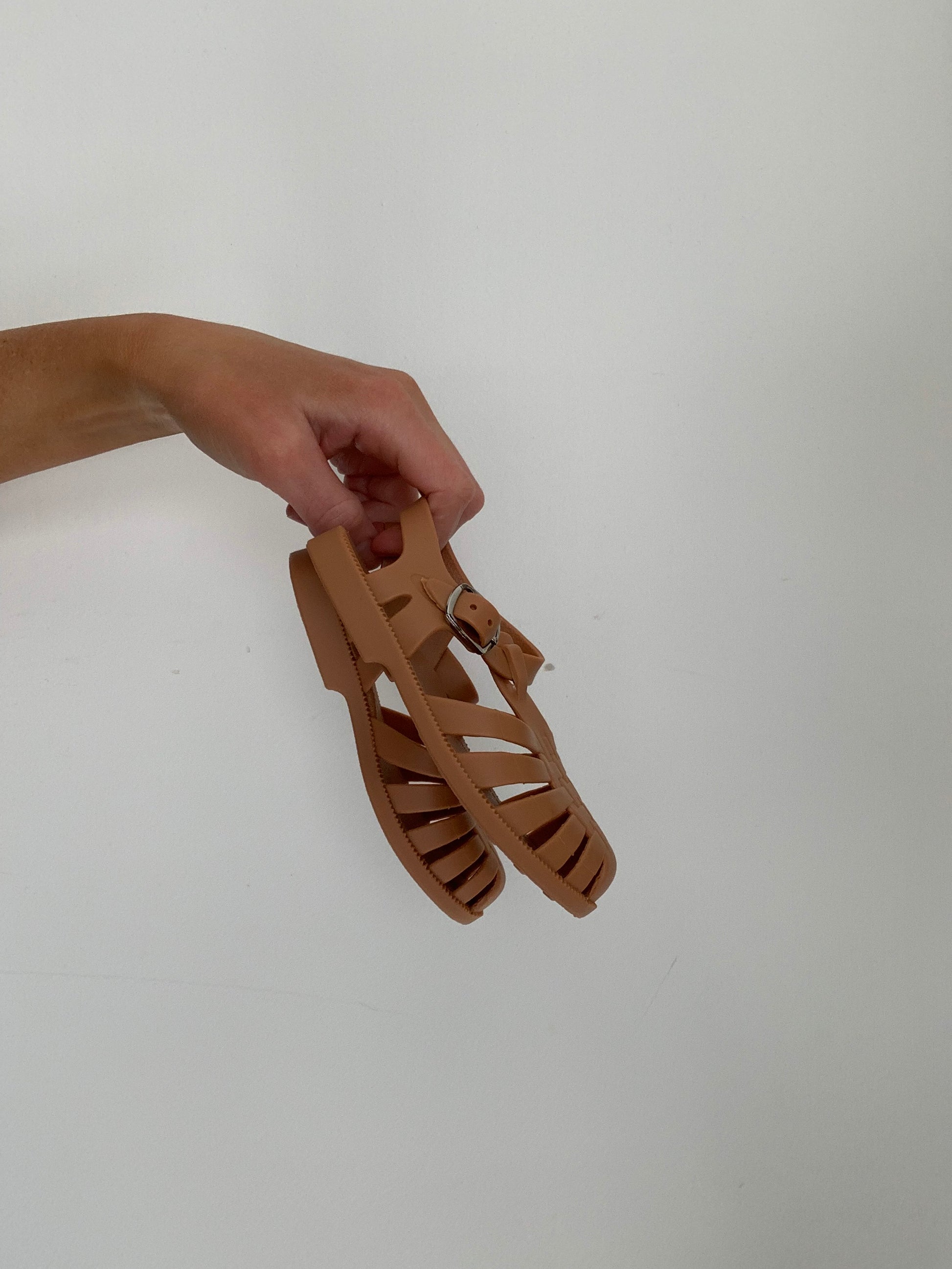The softest and most comfortable jelly sandal made in tan to go with everything!